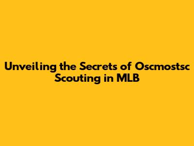 Unlocking MLB Secrets: The Art Of Oscmostsc Scouting